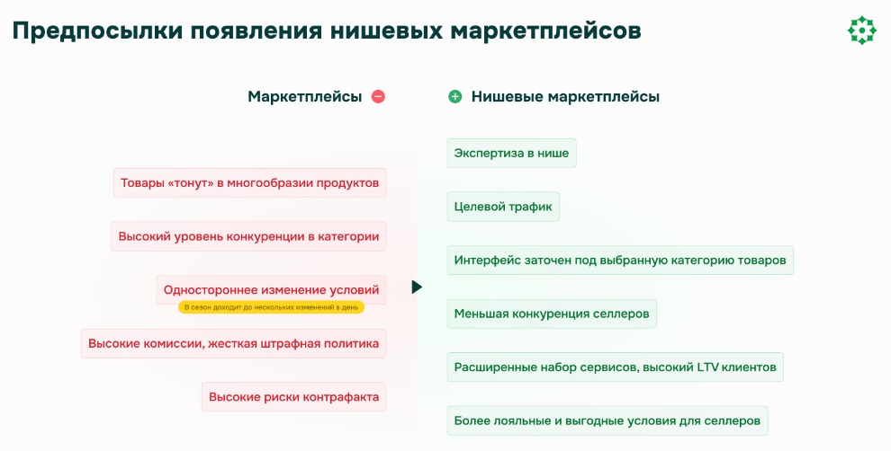 3. Усиление конкуренции на универсальных маркетплейсах. Продавцы стали выбирать узкоспециализированные платформы, поскольку там ниже конкуренция.
