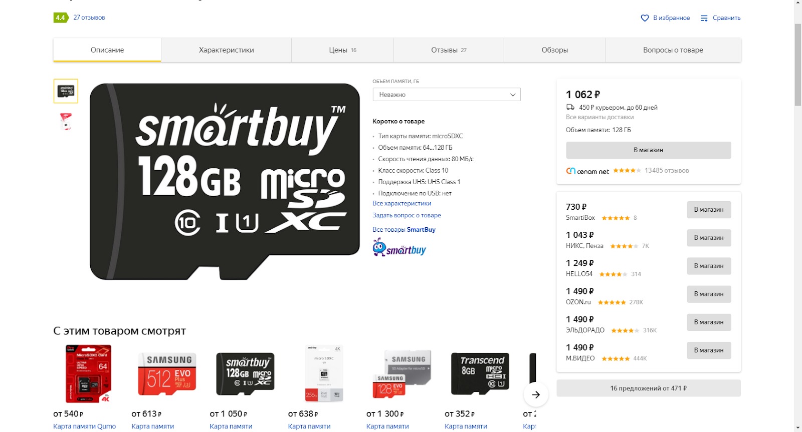Карточка товара — совокупность страниц с подробной информацией о товаре. На площадке в рамках одной карточки представляются предложения сразу целого ряда магазинов. Все предложения публикуются в маркете в разделе «Цены».